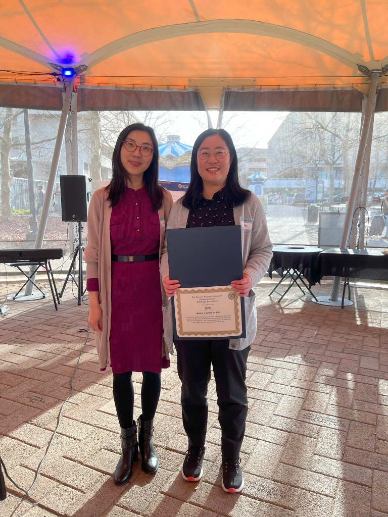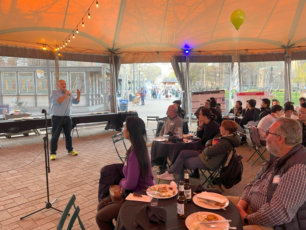 The Pittsburgh Chapter of the American Statistical Association held its annual banquet on a sunny April 17, 2025, at the Schenley Plaza Oval Tent. The event brought together over 90 local statisticians for a vibrant evening of networking and celebration. Attendees included faculty and students from Carnegie Mellon University’s Department of Statistics and Data Science, the University of Pittsburgh’s Department of Statistics and Department of Biostatistics and Health Data Science, local industry professionals, and even a dedicated high school math teacher.